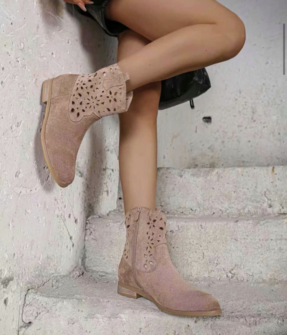 Botki damskie z ażurowym wzorem na płaskim obcasie